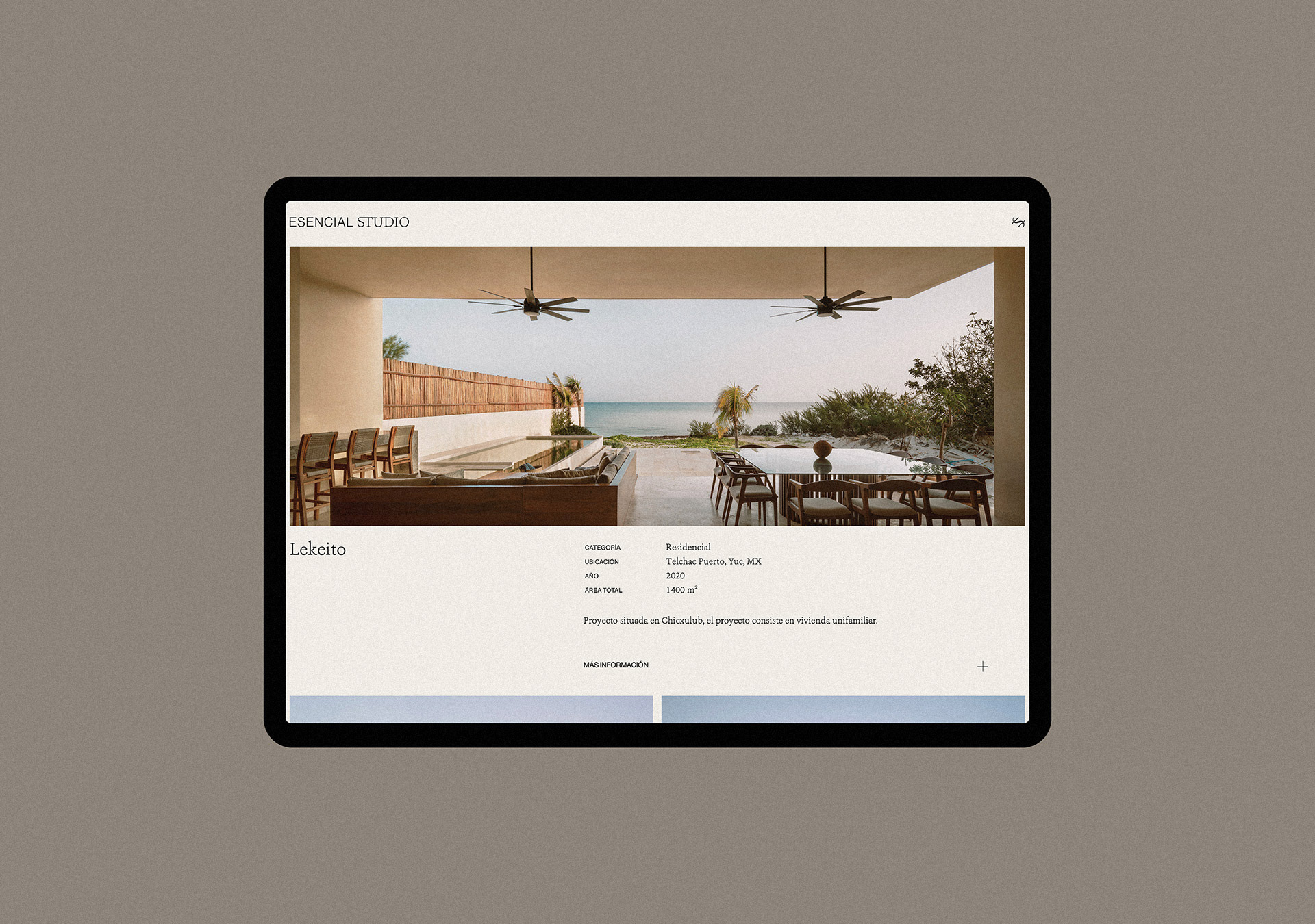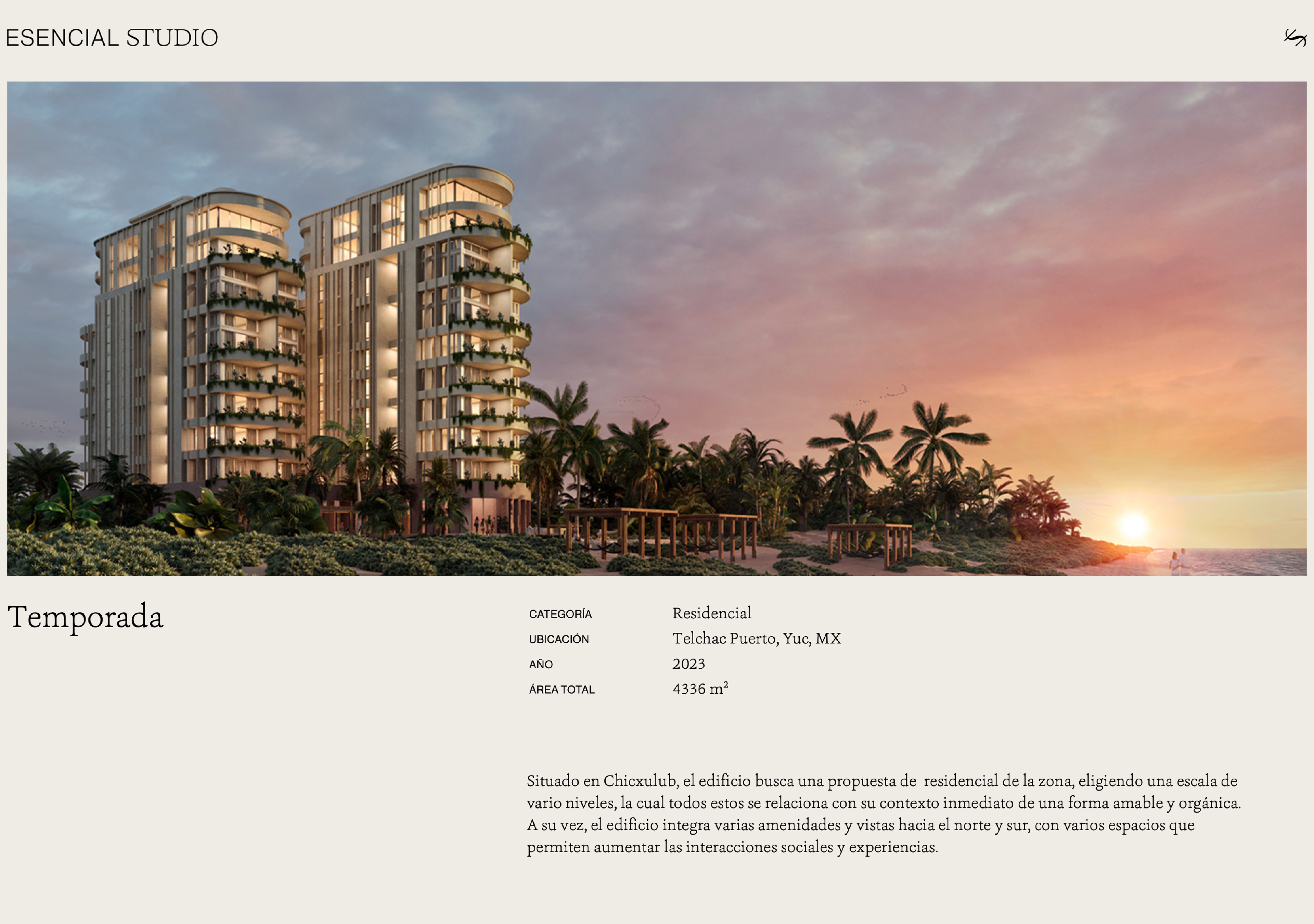 Esencial Studio es un estudio que desarrolla conceptos espaciales al capturar la esencia de proyectos arquitectónicos y urbanos. A través de sus proyectos e identidad, logra hacer visible lo que antes resultaba invisible a los ojos.